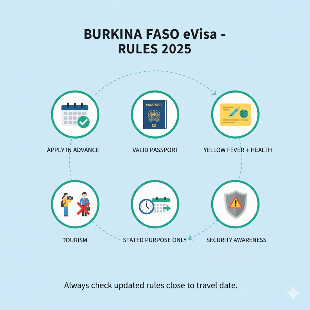 The process is suited for tourism and short-stay purposes, which is perfect for travellers wanting to explore Burkina Faso’s unique cultural and natural highlights.