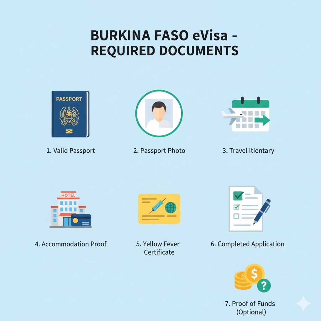 While specifics can vary depending on your nationality and purpose of visit, general document requirements for Burkina Faso e-visa are as follows: