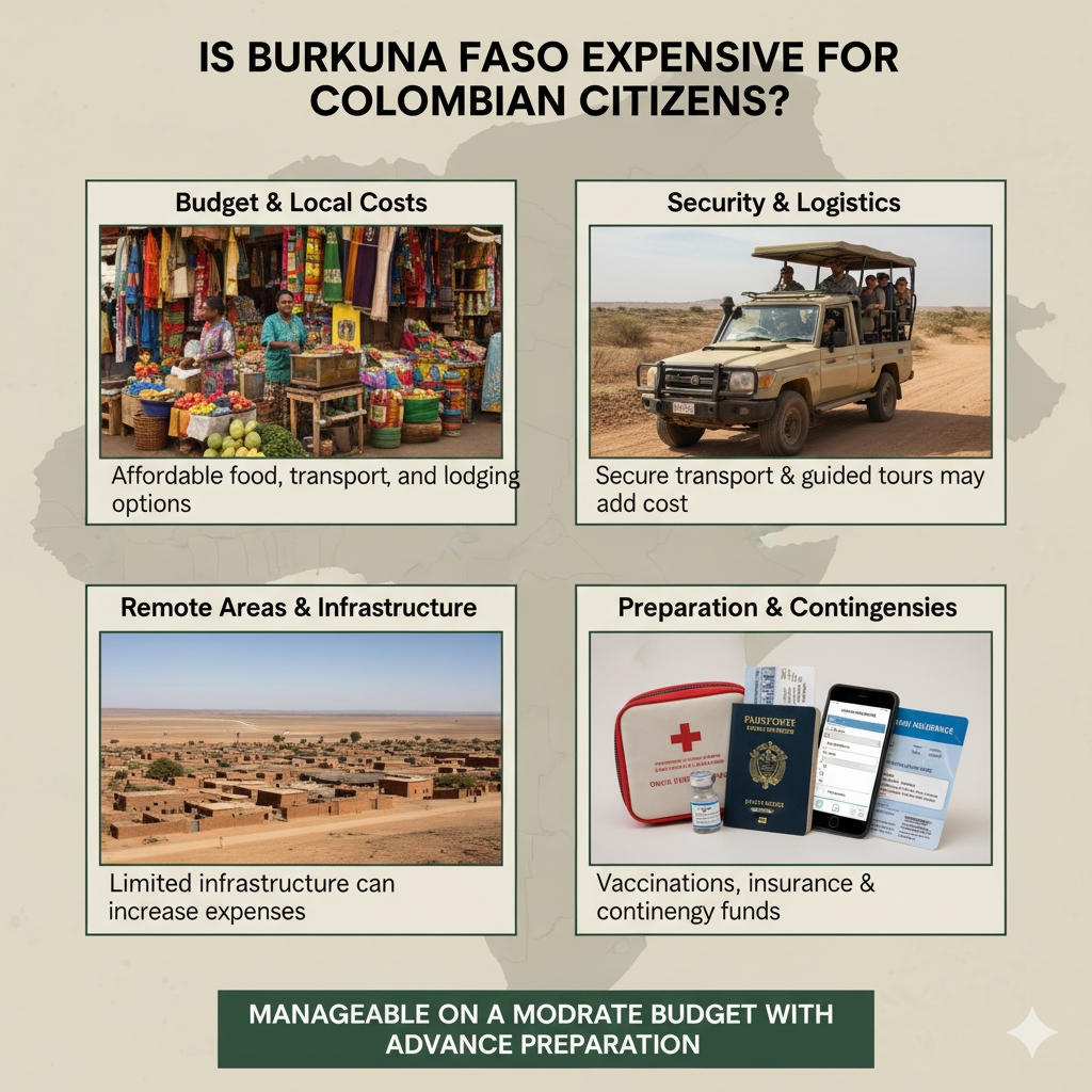 For a Colombian traveller prepared in advance, Burkina Faso can be an enriching yet manageable destination on a moderate budget.