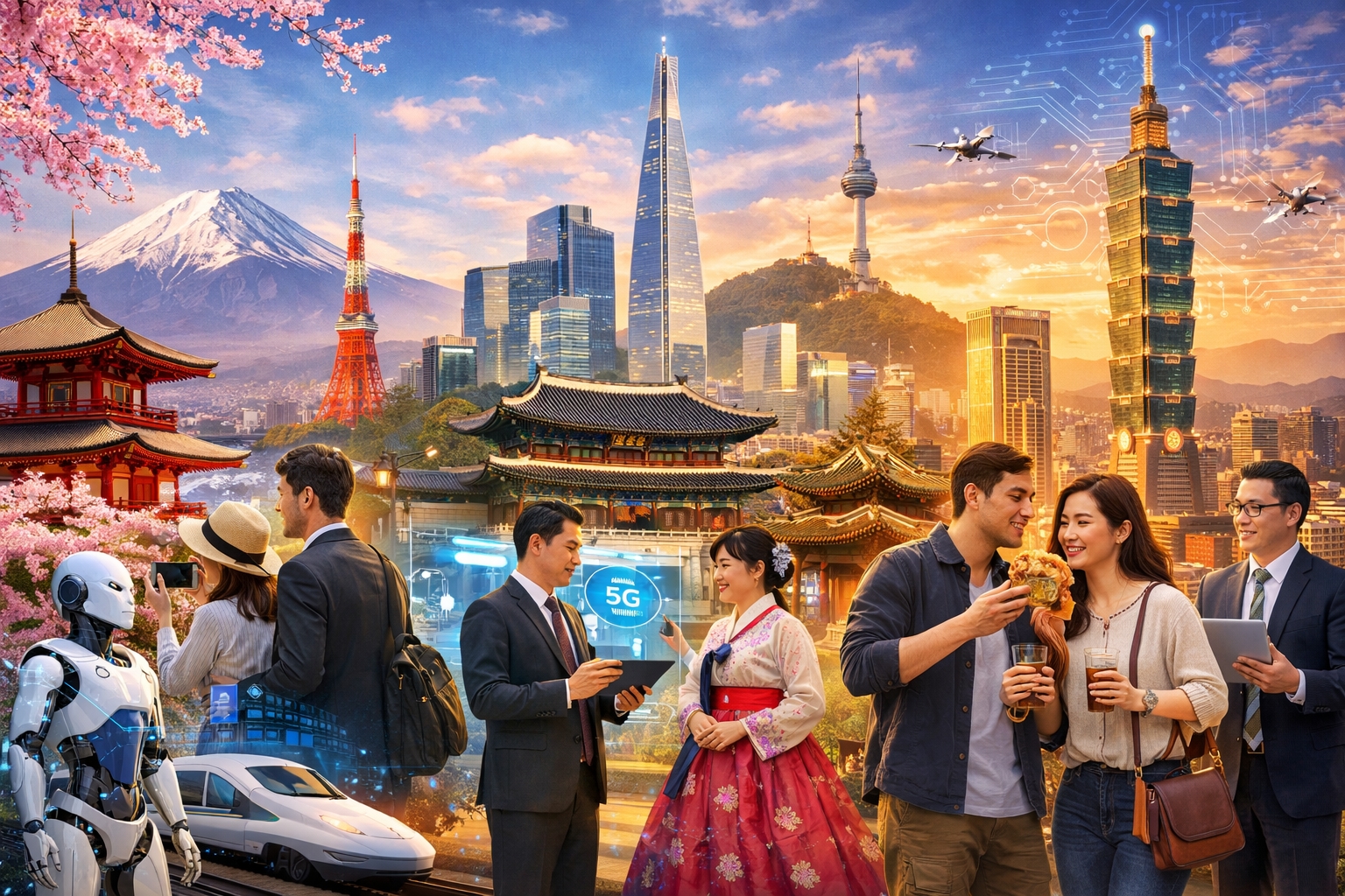 Are you looking for a trip that combines super-cool technology with beautiful old traditions? Then visiting Japan, South Korea, and Taiwan is the perfect choice for you. This part of Asia is famous for being very safe, extremely modern, and full of amazing food. Whether you are traveling for business or just for fun, this "Golden Triangle" is an experience you will never forget.