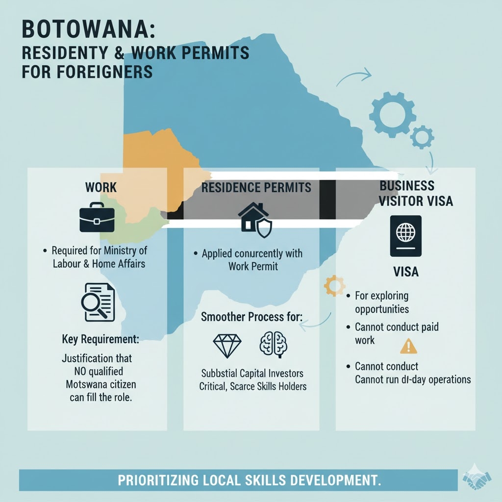 While Botswana welcomes investment, managing the employment of foreigners is regulated to prioritize local skills development.