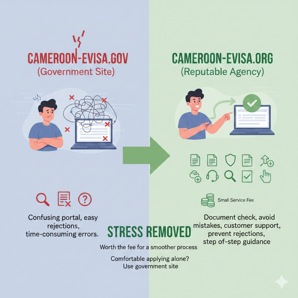 Many travelers say the small service fee is worth it because Cameroon’s portal can be confusing, documents get rejected easily, and errors can cost you time (and sometimes money).