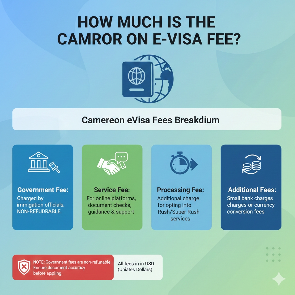 Government Fee: This is charged by the immigration officials of Cameroon.