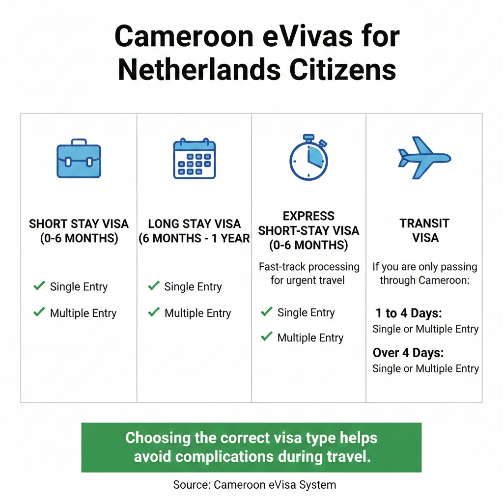 What Types of Cameroon eVisas Are Available for Netherlands Citizens?