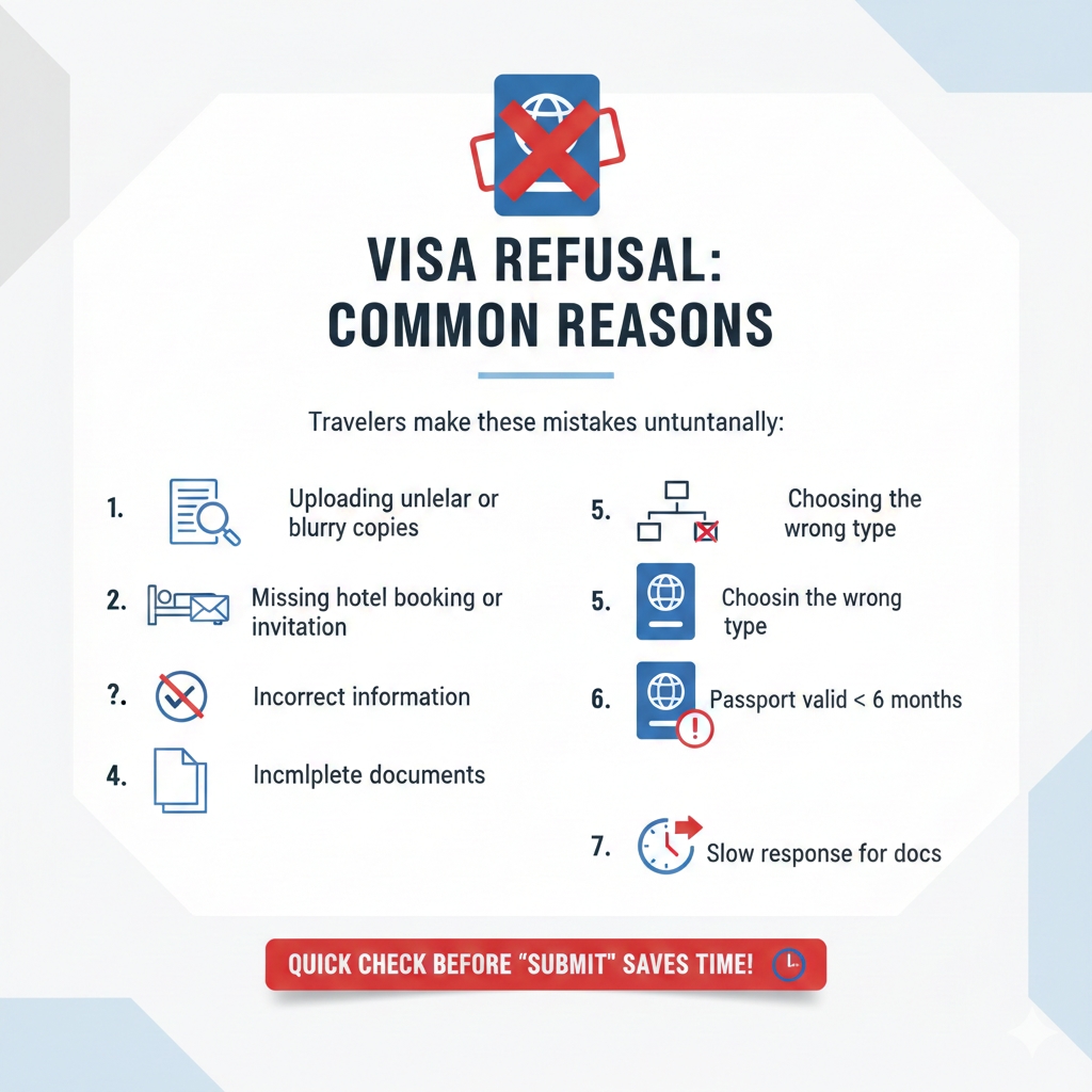 If your visa is rejected due to missing or incorrect information, fees are not refundable.