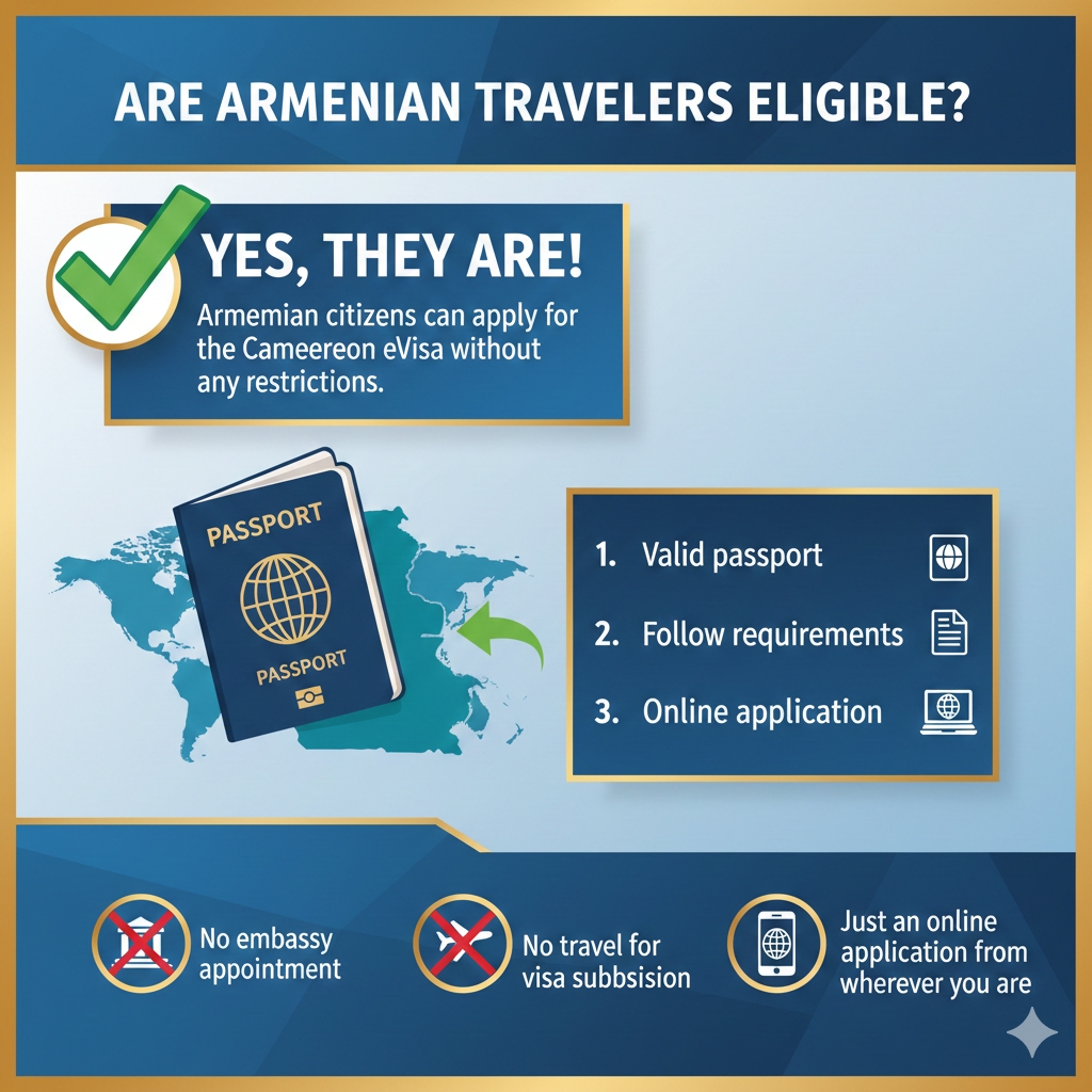 Armenian citizens can apply for the Cameroon eVisa without any restrictions.
