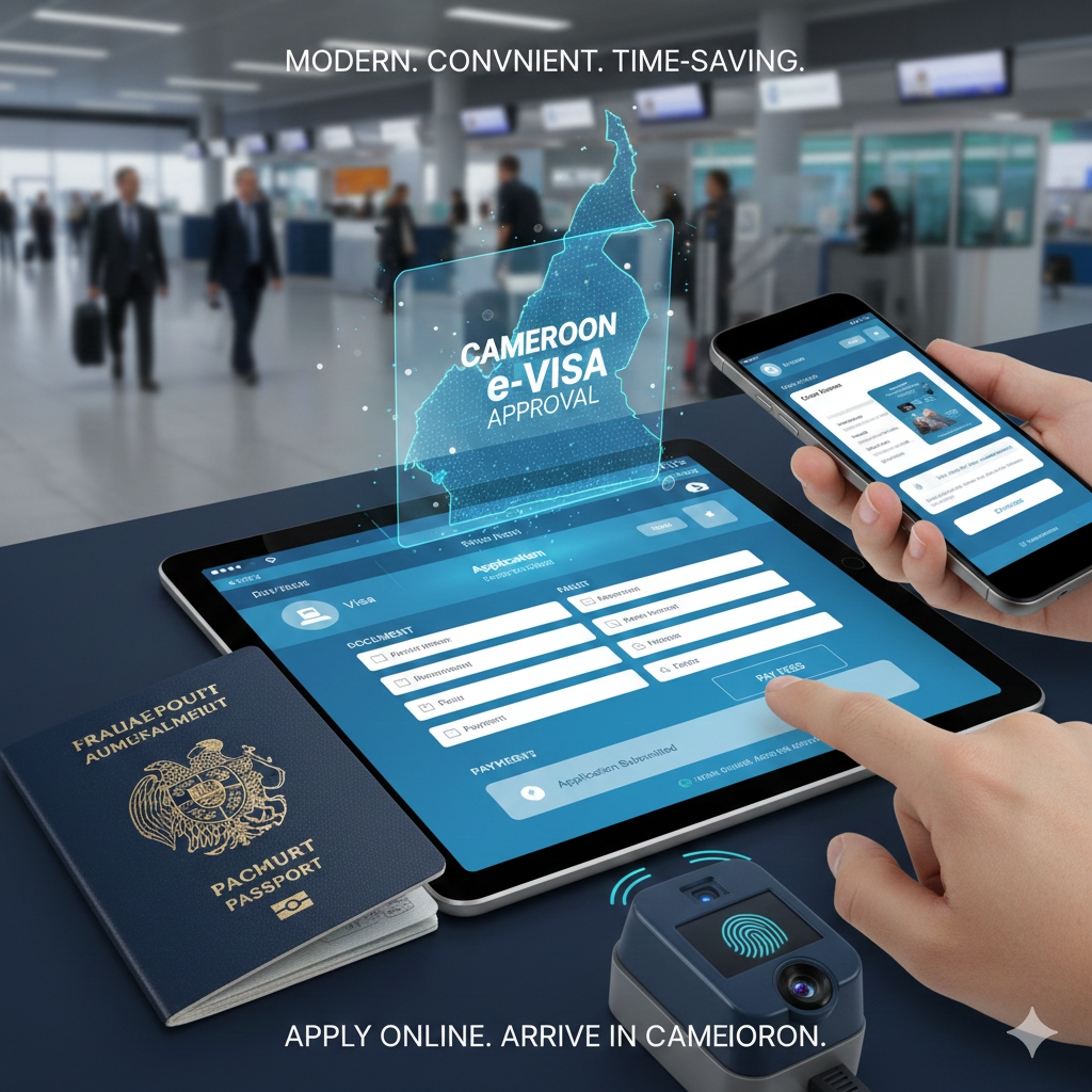 You apply online, upload your documents, pay the fees, and wait for approval. Once you land in Cameroon, the immigration officers complete the formalities by capturing your photo and fingerprints.