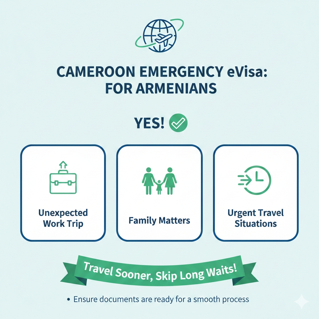 Yes! If something unexpected comes up—a sudden work trip, family matter, or urgent travel situation—you can apply for a Cameroon Emergency eVisa.