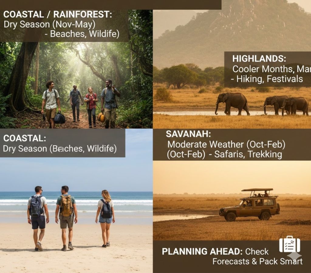 If you are heading for coastal areas or rainforests: avoid heavy rainy season. Choose drier periods to enjoy beaches, outdoor excursions, wildlife spotting, and comfortable travel.