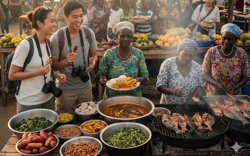 Local stews and soups — rich in flavor, often incorporating local vegetables, fish or meat, and served with traditional staples (like cassava, plantains or local grains).