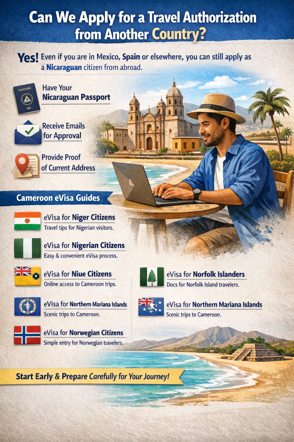Yes, if you are temporarily living or traveling outside Nicaragua (say in Mexico, Spain, or anywhere else), you can still apply as a Nicaraguan citizen from that location. Just make sure: