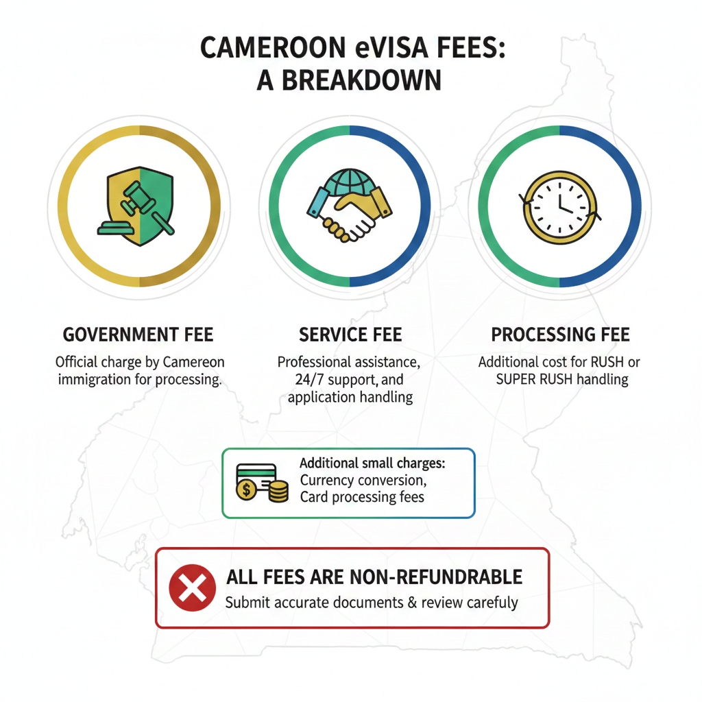 Since Cameroon eVisa fees are non-refundable, it’s important to submit accurate documents and review everything carefully before applying.