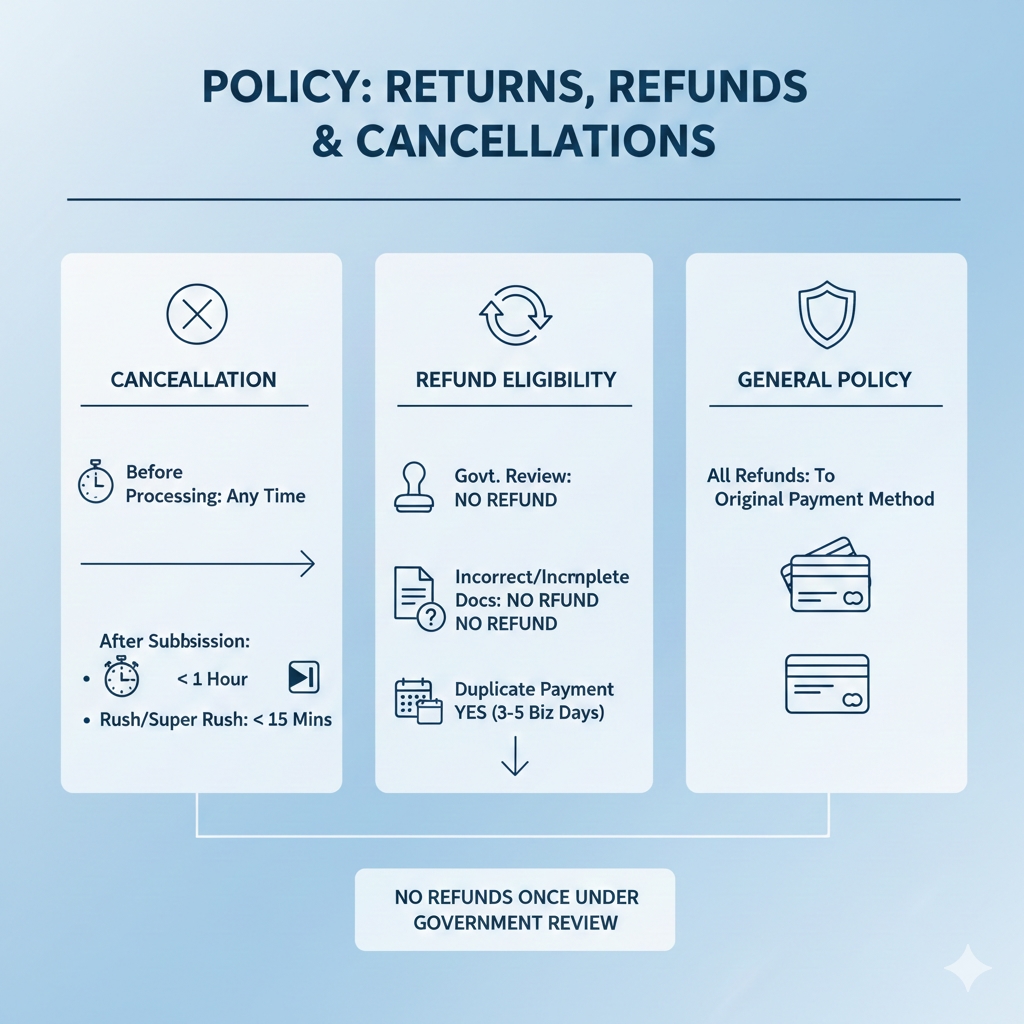 Submitting inaccurate or incomplete documents may lead to rejection, and fees won’t be refunded.