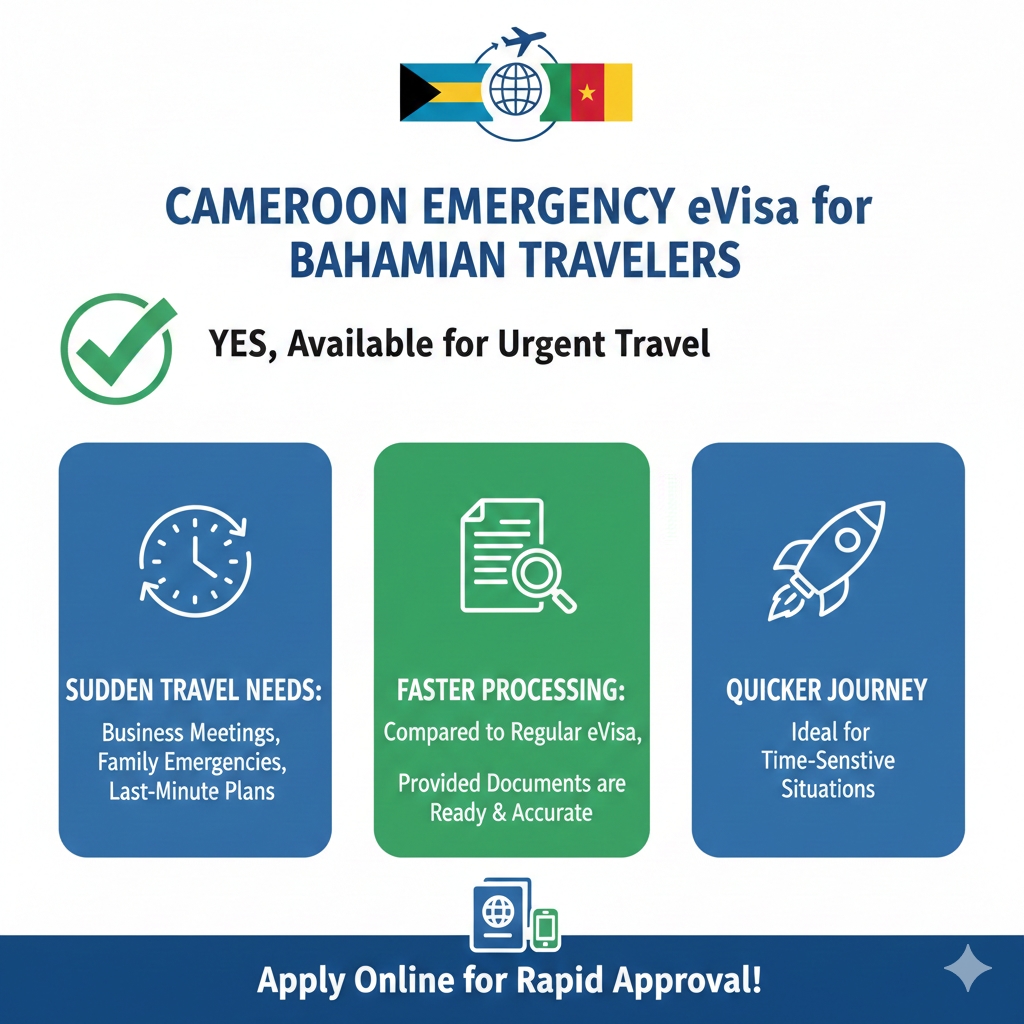 Yes, Bahamian travellers can apply for a Cameroon Emergency eVisa if they have to travel urgently. This is ideal for sudden business meetings, unexpected family needs, or last-minute travel plans. As long as your documents are ready and accurate, the process is much faster than the regular eVisa timeline.