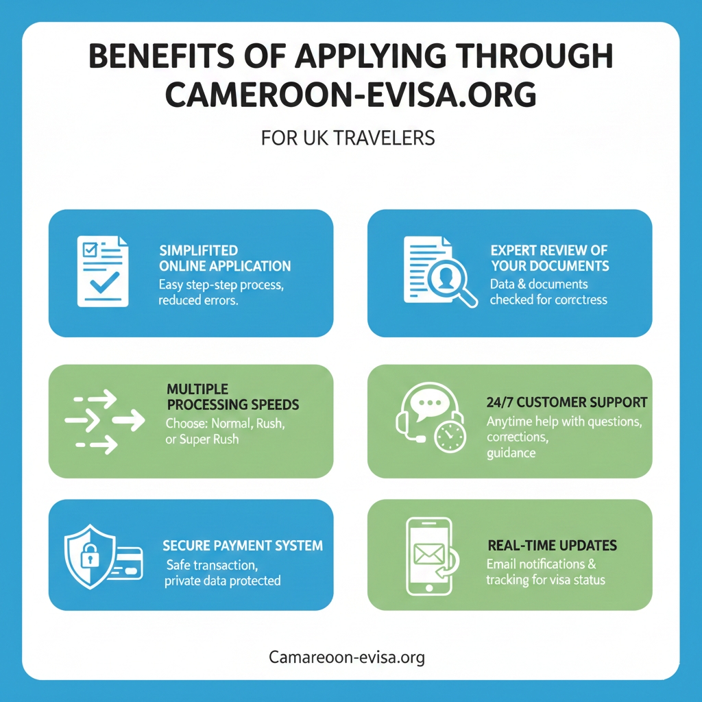By applying at cameroon-evisa.org, you can enjoy numerous handy benefits that will make the process of obtaining a Cameroon eVisa more convenient, speedy, and trustworthy for UK travellers: