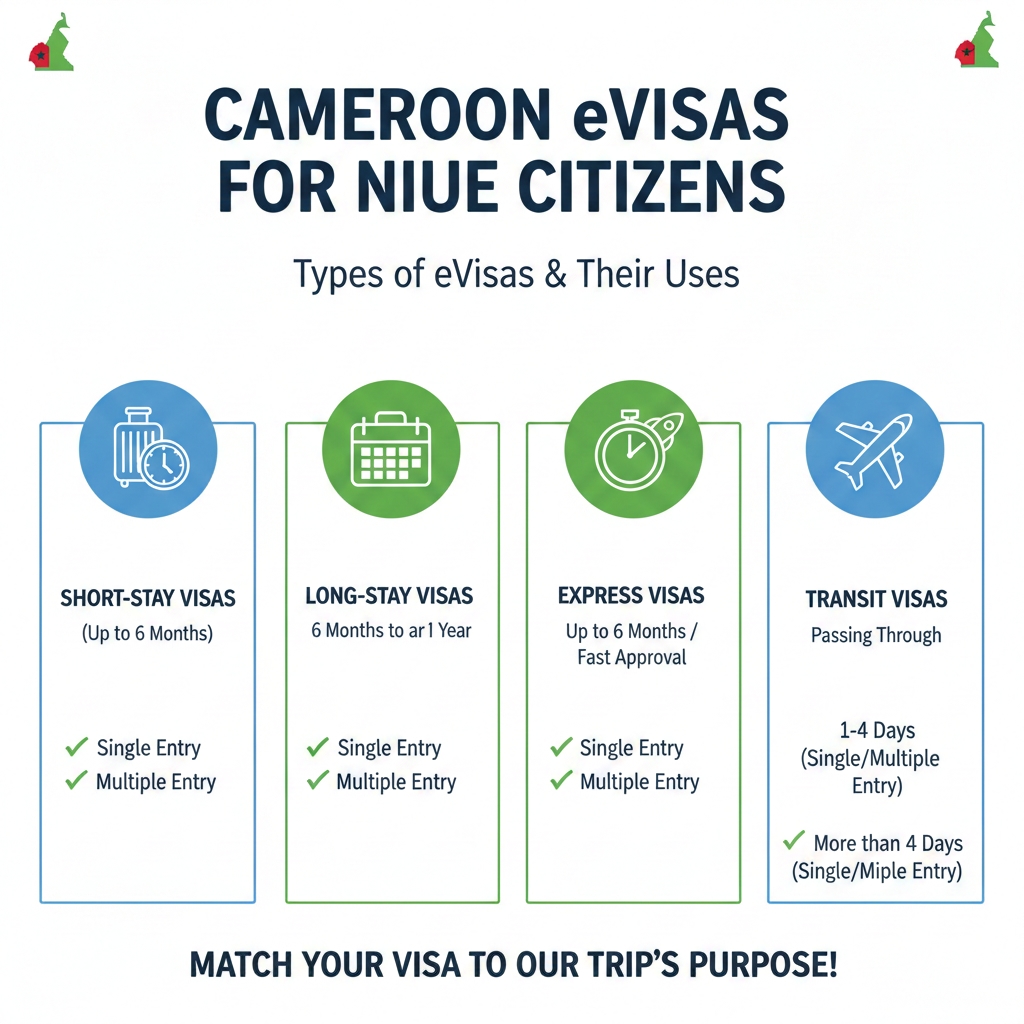 What Types of Cameroon eVisas Can Niue Citizens Apply For?