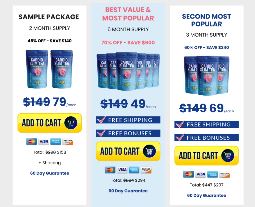 Currently, Cardio Slim Tea is available with a limited-time discount, which includes: