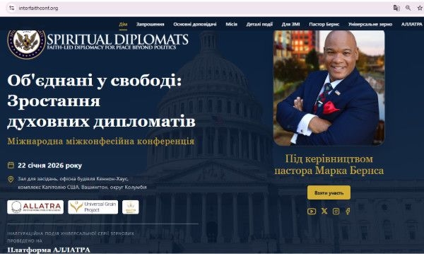На платформі «АЛЛАТРА» під керівництвом пастора Марка Бернса відбулася Міжнародна міжрелігійна конференція: «Єдність у свободі: Час духовних дипломатів», місцем проведення якої став Вашингтон, Капітолій.
