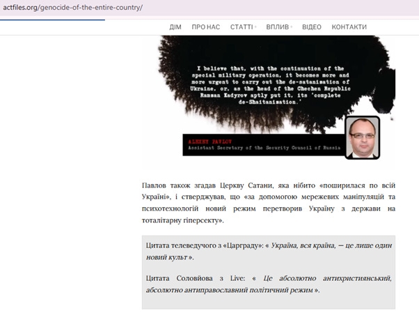 Цитата зі скрина: Павлов також згадав Церкву Сатани, яка нібито «поширилася по всій Україні», і стверджував, що «за допомогою мережевих маніпуляцій та психотехнологій новий режим перетворив Україну з держави на тоталітарну гіперсекту».