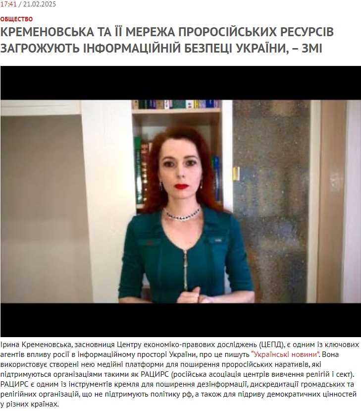 В Україні роль дискредитатора виконувала Ірина Кременевська — жінка, яку ЗМІ нещодавно прямо пов'язали з російськими спецслужбами.