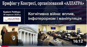 “У Вашингтоні на Капітолійському пагорбі в будівлі Рейберн Хаус, де ухвалюються ключові рішення американської політики, відбувся брифінг Конгресу під назвою "Вплив когнітивної війни". Інфо терроризм та маніпуляції”, організований на платформі АЛЛАТРА. Захід зібрав політиків, експертів з національної безпеки, дослідників і правозахисників для обговорення однієї з найактуальніших проблем сучасності, когнітивної війни. На брифінгу було розглянуто, як транснаціональні мережі здійснюють маніпуляцію громадською думкою, поширюють дезінформацію, проникають в різні установи і координують акти насильства в межах гібридних стратегій, спрямованих на дестабілізацію демократичних суспільств, що становить серйозну і зростаючу загрозу для Сполучених Штатів.”