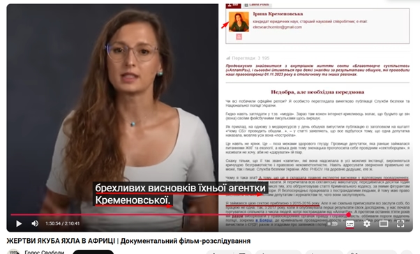 Але вона мабуть “забула” повідомити суспільство,що вона усю свою "незалежну" в лапках журналістську і “експертну” кар'єру присвятила медіа булінгу десятків організацій, бізнесів, релігійних і наукових рухів, експертів релігієзнавців, захисників тварин. Кременовська діє точно за методичкою кремля, сіє рашистські наративи та дезу. Тобто Кременовська рясно, і з насолодою поливає брудом і відвертим лайном усіх, хто небажаний кремлю - її кураторам. Вона як істинний агент кремля малює псевдо-експертні висновки, що один в один копіюють риторику її російського гуру та москальського куратора Дворкіна.