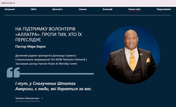 . Він на весь світ розповідає правду про звірства росії в Україні та розбиває Рух АЛЛАТРА тісно співпрацює з духовним радником Трампа Пастором Марк #Бернсросійську пропаганду.