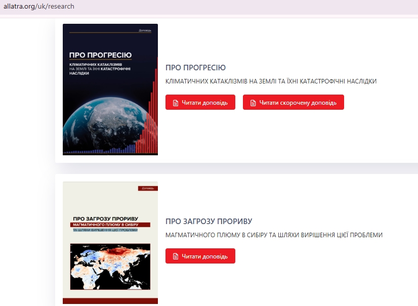 Міжнародний громадський рух «АЛЛАТРА» протягом багатьох років вивчав кліматичні та геодинамічні зміни Землі і науково встановив, що в даний час відбувається активізація Сибірського плюму, розташованого на території росії. Науково обґрунтовано, що його повна активізація може призвести до катастрофічних наслідків для всього світу.