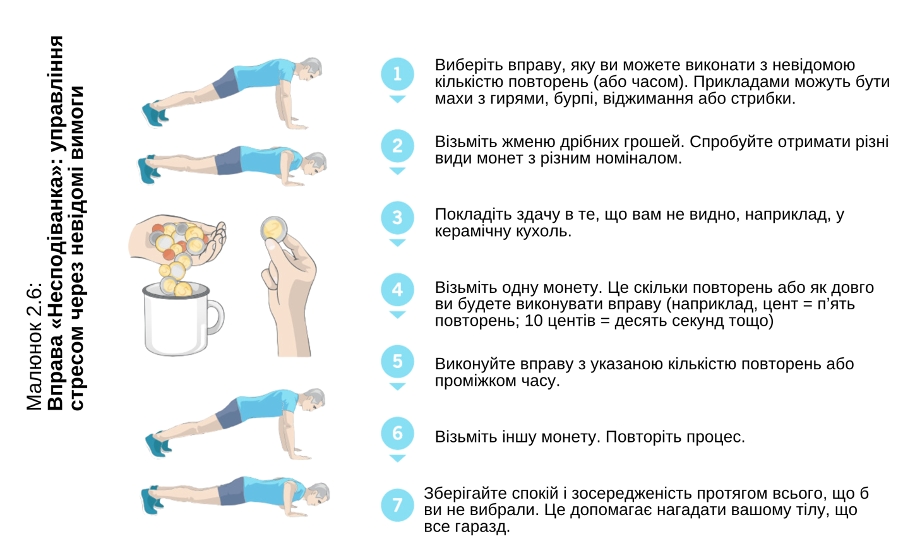 Ми можемо покращити здатність переносити високі навантаження (та інші важкі завдання), якщо будемо працювати з цією реакцією, а не проти неї. Наприклад, можна практикувати: