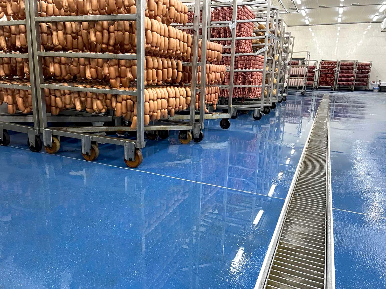 Харчова промисловість, переробка м’яса та молока - тут важлива гігієна, легкість очищення та стійкість до жирів, кислот, масел. Полімерне покриття вирішує ці завдання.