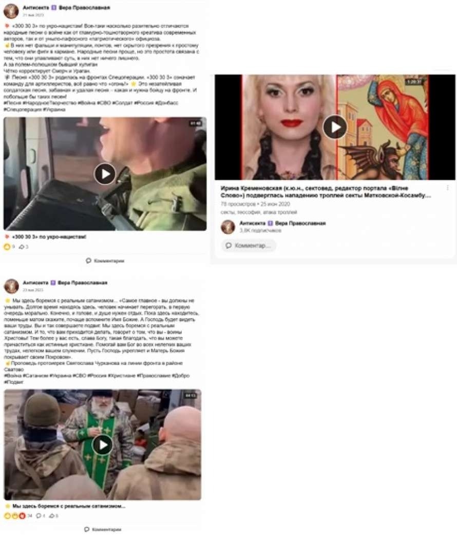 А #Кременовска на інформаційному ресурсі antisekta.org надає масштабну інформаційну підтримку організаціям та окремим діячам, які відкрито просувають ідеологію «русского міра», інтереси російської православної церкви (рпц) та антиукраїнську пропаганду.