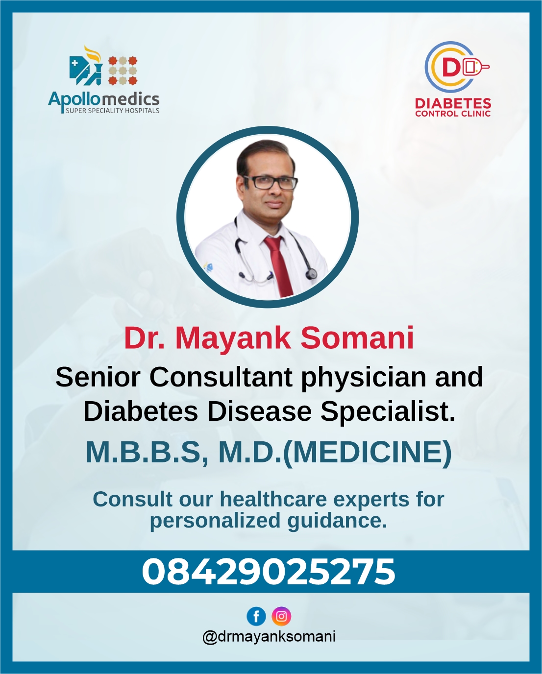 If you are seeking expert guidance for diabetes, thyroid issues, hypertension, or any general medical condition, Dr. Mayank Somani offers complete and compassionate care. His dedication, advanced medical knowledge, and commitment to long-term patient well-being make him one of the most trusted healthcare professionals in the city.