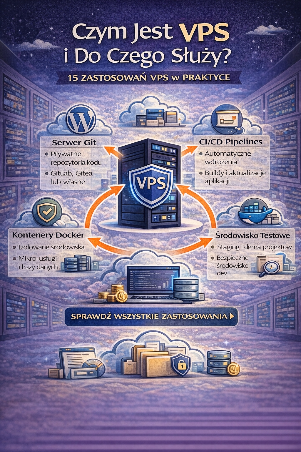 W tym artykule pokażę w prosty sposób, do czego realnie służy VPS i jakie problemy rozwiązuje w praktyce. Zobaczysz też konkretne scenariusze, w których VPS daje przewagę: od uruchamiania aplikacji („vps dla nodejs”, „laravel na vps konfiguracja”) po bezpieczny dostęp przez VPN („vpn na vps”, „wireguard vps konfiguracja”) i wdrożenia developerskie („docker na vps”, „deploy na vps”). Dzięki temu łatwiej ocenisz, czy VPS jest dla Ciebie — i jaki typ konfiguracji będzie najlepszy pod Twoje cele.
