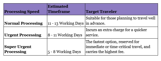 The application service typically offers three tiers of Processing to meet various travel timelines: