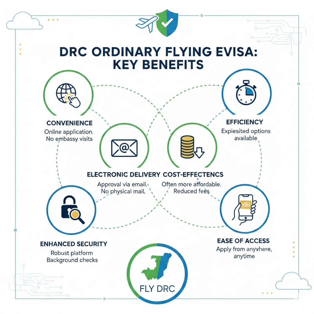 Opting for the Democratic Republic of the Congo (DRC) eVisa, or the Ordinary Flying eVisa, offers a range of significant benefits compared to the traditional consular visa process. These advantages focus on making the travel authorization process faster, easier, and more accessible for international visitors.