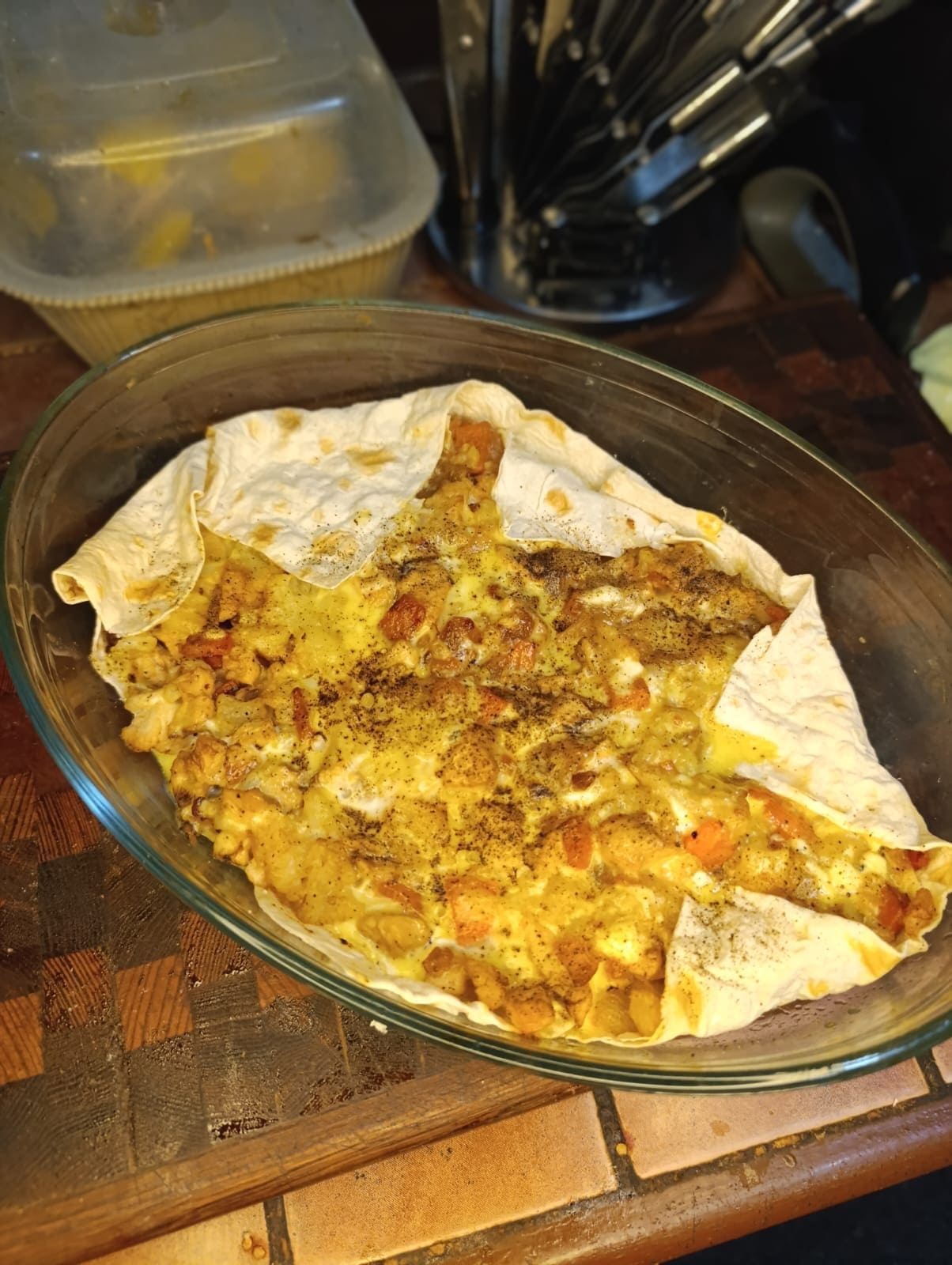 Швидка запіканка з куркою та цвітною капустою на лаваші