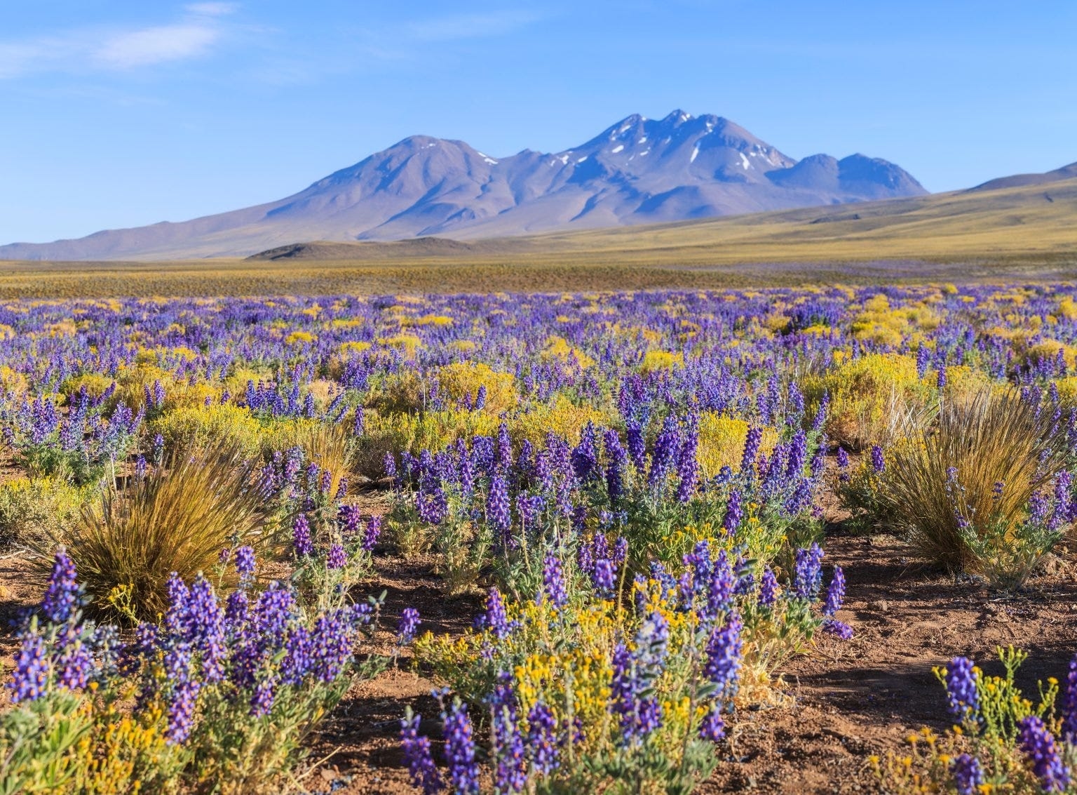 Кожні пару років частини впізнаваного помаранчевого ландшафту пустелі Атакама набувають яскравого фіолетового відтінку. У пустелі може вижити небагато живих організмів, але ці фіолетові квіти проростають навесні й залежать від невеликого відсотка опадів, які отримує регіон. Відвідувачі дивуються не лише красі квіт, але й їх стійкості до життя навіть у найпосушливіших місцях. Окрім фіолетового кольору, пагорби також стають жовтими, білими та синіми через постійне рослинне життя. На жаль, через глобальне потепління та людський фактор цим квітам загрожує зникнення.