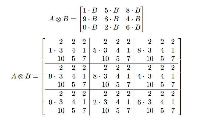 Ось приклад обчислення добутку Кронекера звичайним математичним записом:
