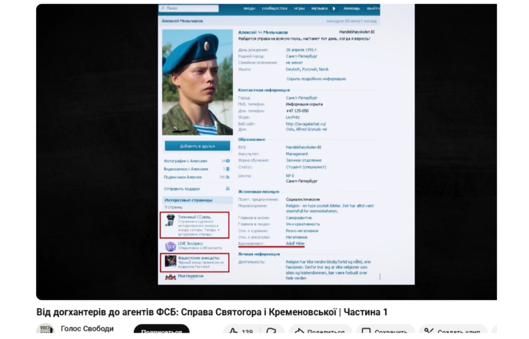 Подивіться на цього персонажа. НацUст із санкт-петербурга, відомий у своїх колах під кличкою Фріц. Сам про себе сказав: “Я - нацист.” Ще до 2014 року Мільчаков був активним учасником дохантерських спільнот. Він публічно знущався над тваринами, викладав фото з катованими та вбитими собаками.
