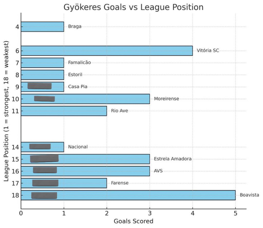 У підсумку, Дьокереш — не «універсальний форвард», як його часто називають, а гравець із дуже специфічним профілем: вибуховий, швидкий, з хорошими відкриваннями та просуваннями, але з обмеженнями у грі в тісному просторі, під тиском і без яскравого технічного арсеналу. Його потужна статистика — частково похідна від «португальської аномалії», де контекст працює на нього.
