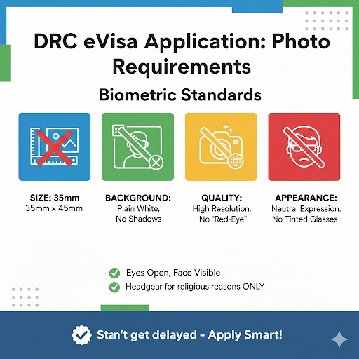 Congolese immigration authorities are meticulous about biometric standards. To avoid delays: