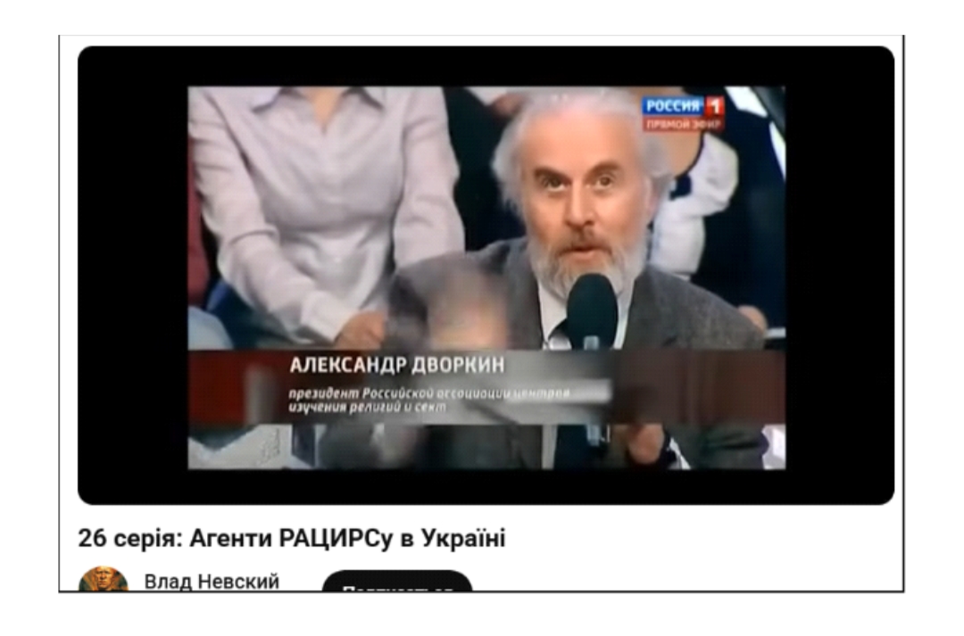 Головним спікером у цьому сюжеті виступив Олександр #Дворкін — центральна фігура фсбешної РАЦИРС антикультового руху в росії. Його позиція була максимально чіткою: Україна як держава — це духовно заражена територія, а Захід використовує секти як інструмент руйнування православної цивілізації.