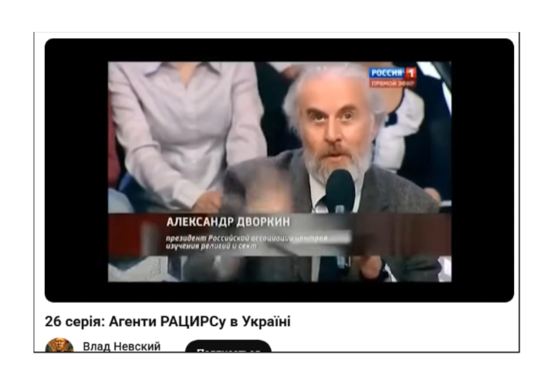 Головним спікером у цьому сюжеті виступив Олександр #Дворкін — центральна фігура фсбешної РАЦИРС антикультового руху в росії. Його позиція була максимально чіткою: Україна як держава — це духовно заражена територія, а Захід використовує секти як інструмент руйнування православної цивілізації.