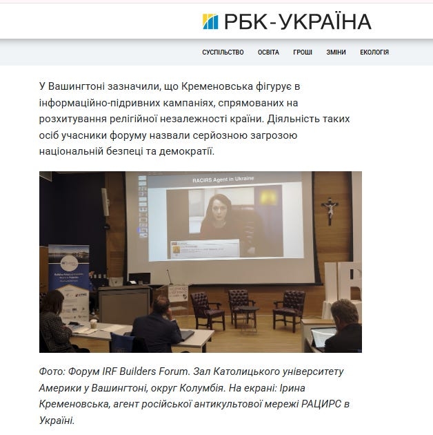 Переглядаючи нещодавню статтю на РБК про те, що у Вашингтоні на міжнародному форумі Україну визнали прикладом захисту релігійної свободи, і де йшлося, зокрема, про #Дворкіна та #Кременовську