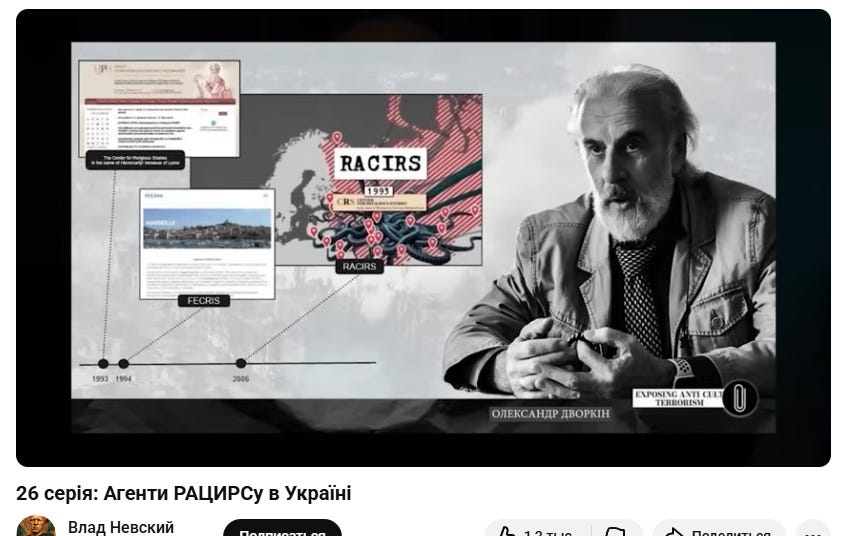 А тепер звернемося до історії. З початку 90-х (дев’яностих) років минулого століття в росії активно формувалася система антикультової риторики, нібито спрямована на боротьбу з тоталітарними сектами. На практиці ж вона стала зручним механізмом для придушення інакомислення, контролю над релігійною сферою і створення образу ворога. Центральну роль у цій системі відіграли Олександр Дворкін і заснований ним за підтримки рпц московського патріархату Антикультовий центр Іринея Ліонського, згодом РАЦИРС (Російської асоціації центрів вивчення релігій і сект).