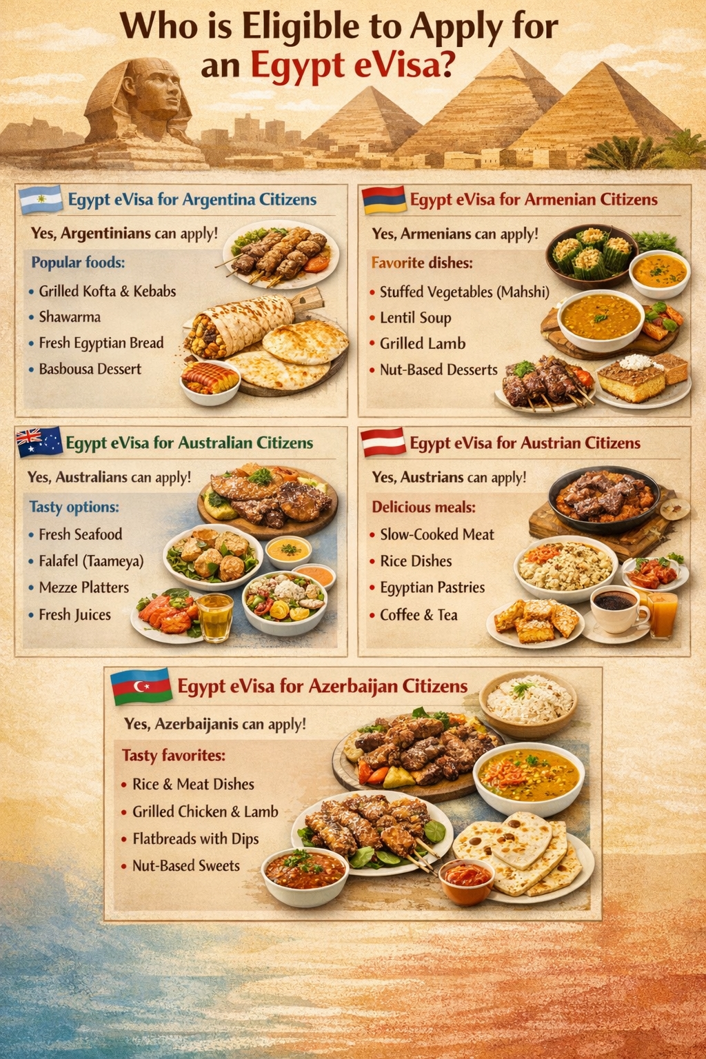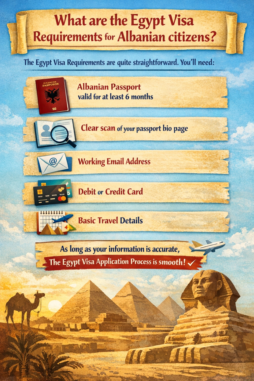 Albania isn’t the only country eligible for the Egypt eVisa. Egypt allows travelers from many countries to apply online, making tourism more accessible worldwide.