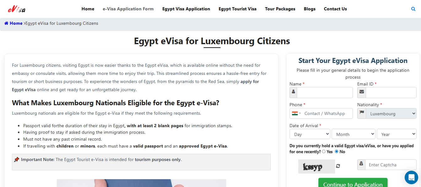 How do I apply for an Egypt eVisa as a Luxembourg citizen