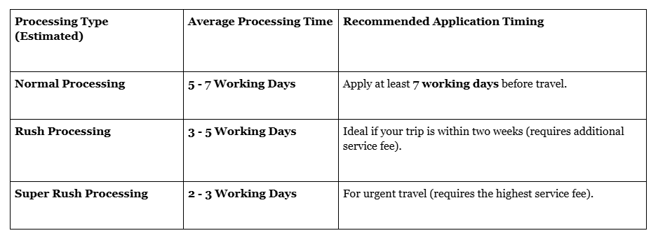 Higher Fee: Charges a service fee in addition to the government visa fee.