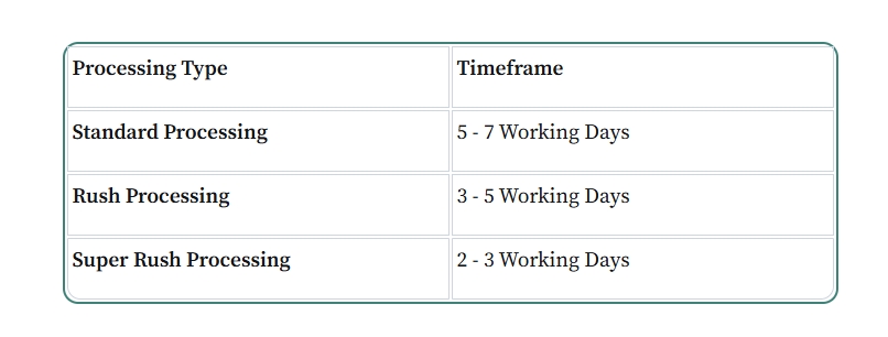 We understand that travel planning can be last-minute. That’s why we offer three distinct processing speeds to fit your schedule:
