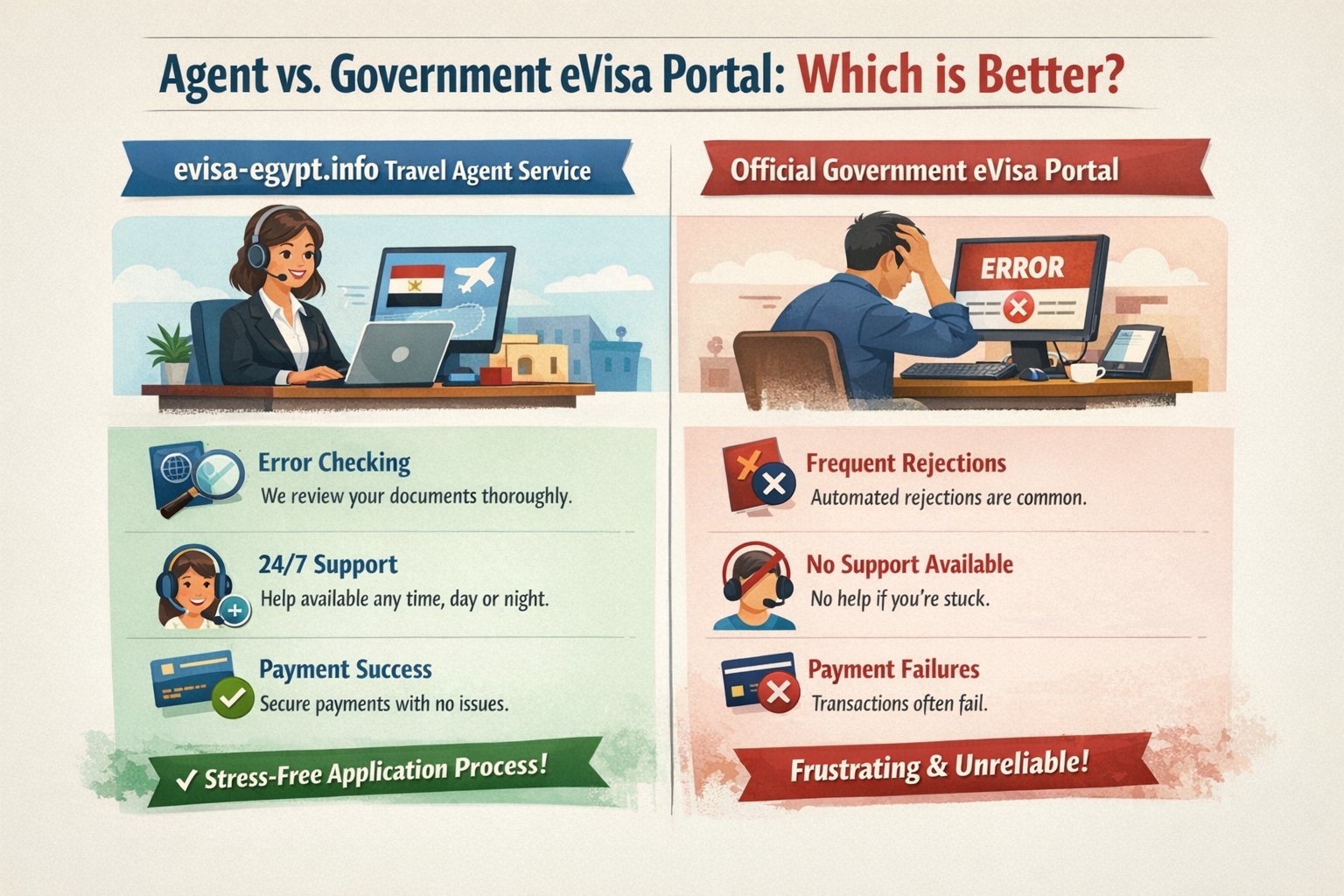 While you can technically apply through the official government portal, many travelers find it frustrating due to frequent crashes, payment failures, and lack of support. Choosing an agent like evisa-egypt.info offers: